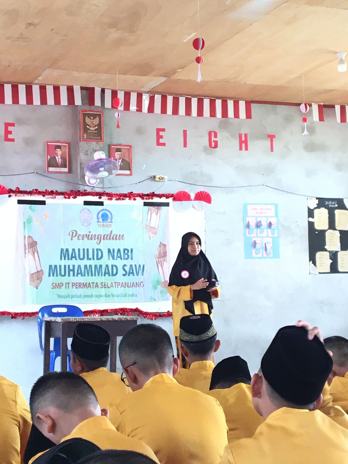 Pada hari Jumat, 20 September 2024, SMP IT Permata selatpanjang mengadakan acara memperingati Maulid Nabi Muhammad SAW pada jam 08.00 s.d 11.00 yang berlokasi di kelas 8 dan 9.