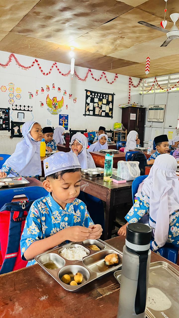 Pembagian paket makanan bergizi ini dilaksanakan perdana pada Hari kamis, 04 Desember 2025. Oleh Satuan Pelayanan Pemenuhan Gizi (SPPG) Banglas, Sebanyak 404 pelajar terlihat bersemangat saat menerima dan menyantap hidangan yang telah disiapkan dengan standar gizi yang baik.
