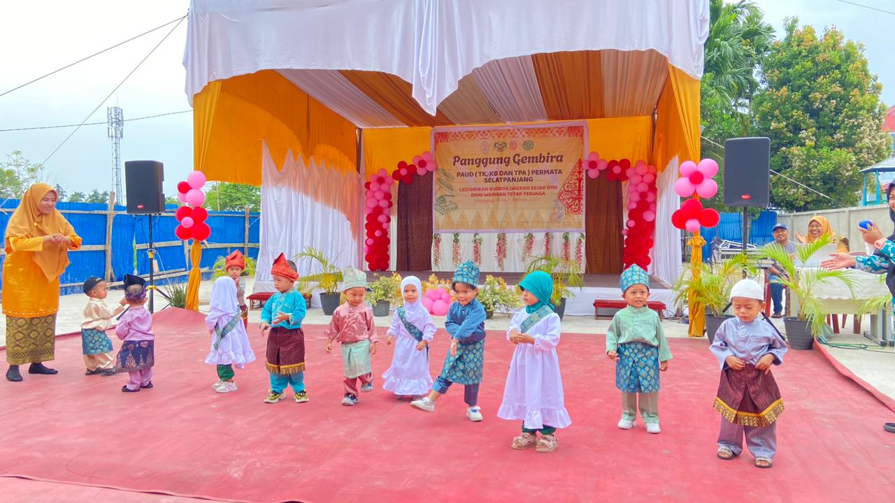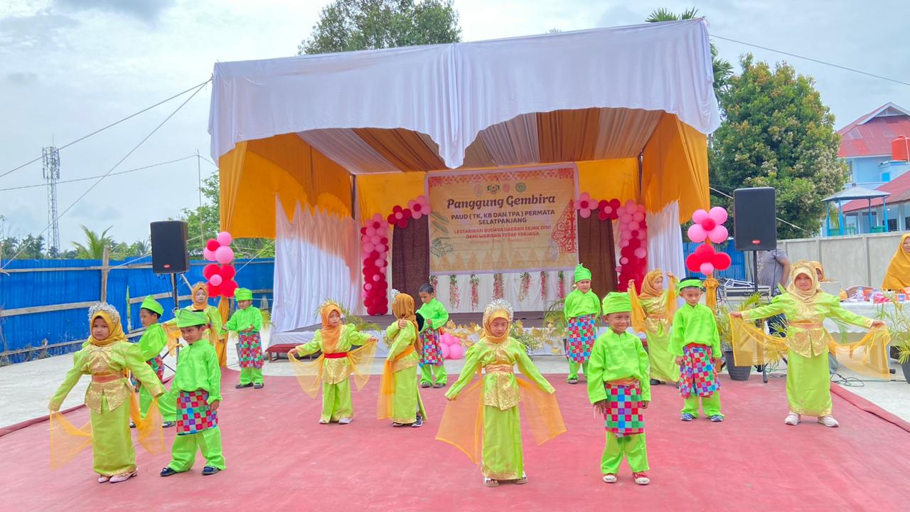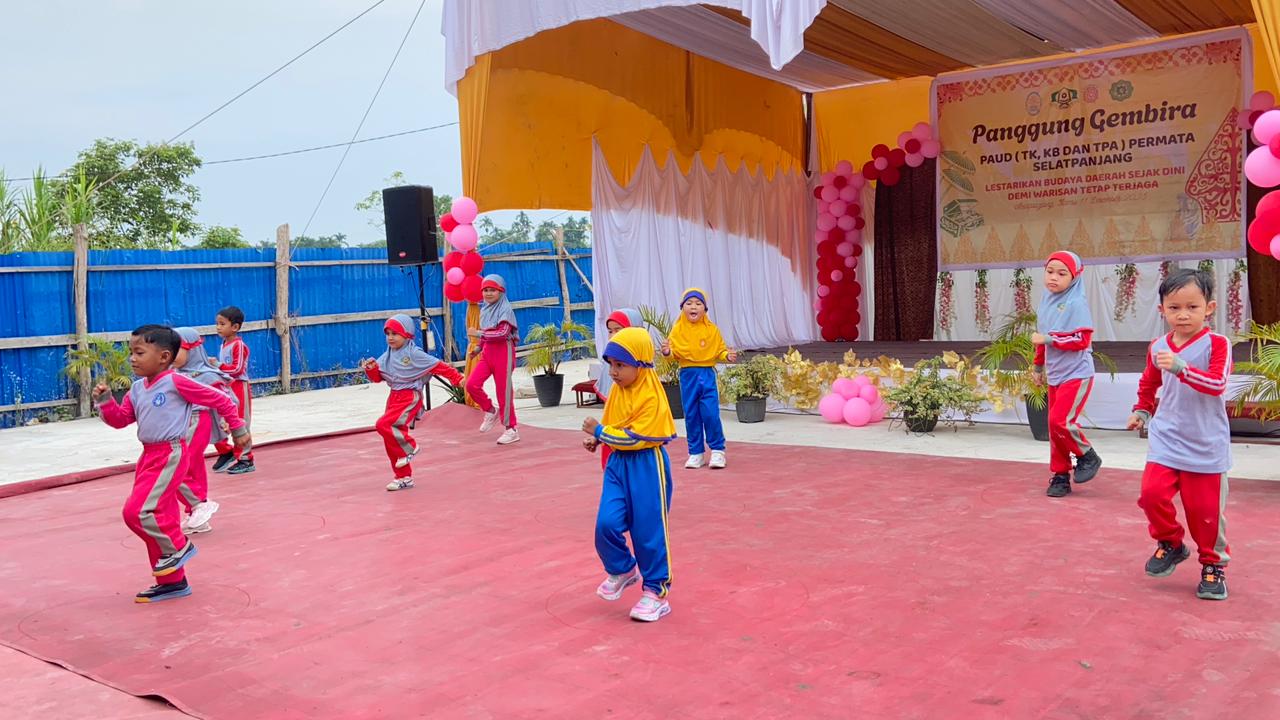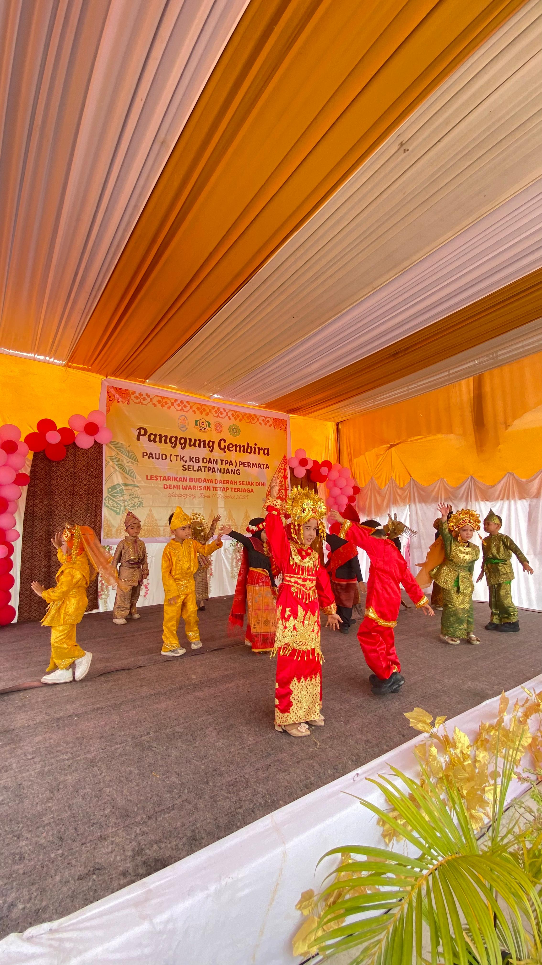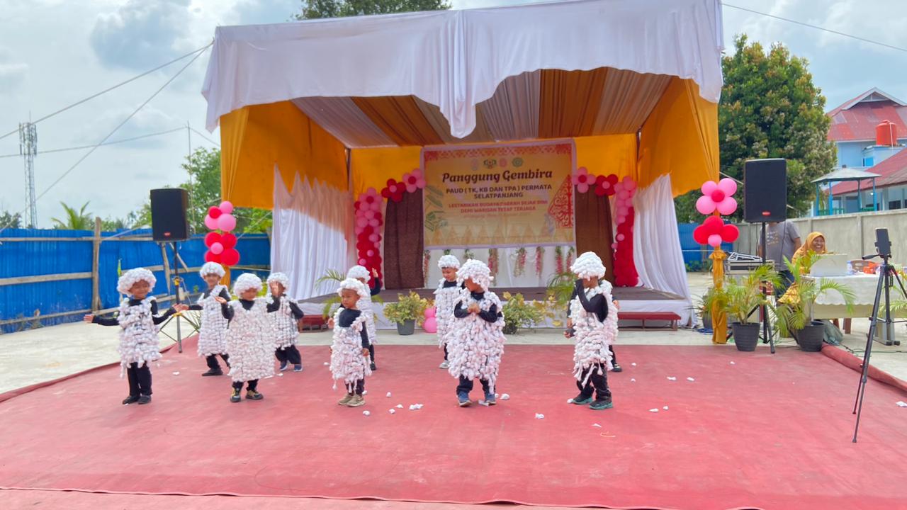 Kegiatan Pangung Gembira yang mengusung Tema “ Lestarikan Budaya Daerah Sejak Dini demi warisa Tetap Terjaga” menghadirkan beragam Nuansa Seni daerah yang memukau serta sarat dengan pesan-pesan moral,Mulai dari Tarian Tradisional, Pertunjukan Musik Daerah,serta Kompilasi lagu dan Gerak Nada yang lincah dan Ceria , sehingga Identik dengan Karakter Peserta Didik Usia Dini, namun demikian dalam setiap kegiatan tetap di angkat Nilai agama dan Nuansa Keislaman sebagi ciri Khas dari yayasan permata sendiri, seperti cara berbusana, beberapa tampilan yang bersifat Religius serta penerapan Adap dan dan budaya sopan santun dalam setiap tampilan anak.